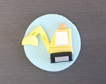 6 x Excavator cupcake toppers, digger cupcake decorations, construction cake decorations, fondant cupcake toppers, party decorations