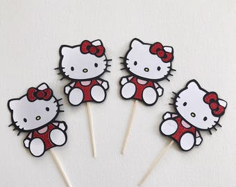 12 x Hello Kitty Cupcake Toppers, Edible fondant Hello Kitty toppers, Hello Kitty decorations