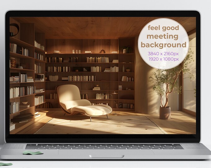 Serenity Zoom Background with Cozy Library & Warm Lighting, Zoom Virtual Background, Zoom Virtual Office, Library Feel Good (378)