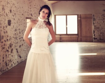 Bride wedding dress, Lace and silk wedding dress, dress, lace, silk, off-white,
