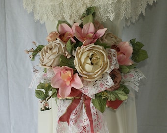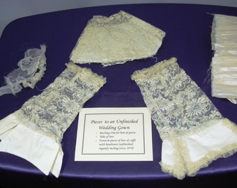 Doll collectors will love this set of lace and silk from 1870s wedding dress. Never finished, never worn.