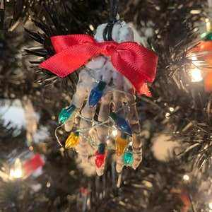 Read the full title Skeleton Christmas Lights Funny Horror Creepy Scary Christmas Ornament