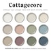 Cottagecore Home Paint Palette, Sherwin Williams 2025 Inspired, Whole House Color Scheme, Trendy Interior Design, Cottage Farmhouse Vibes