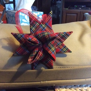 This shop was super helpful in helping me select two beautiful German stars. Tracy even made two additional new stars with my color preference to help me make my selection. She was in constant contact with me throughout the process and provided me with sample fabrics to review. Once the stars were purchased they were shipped promptly and received in only two days. When I opened my packets I realized the stars were even more beautiful than the photos because they were three dimensional. I would highly recommend this shop. Excellent customer service.