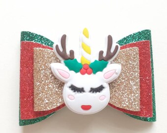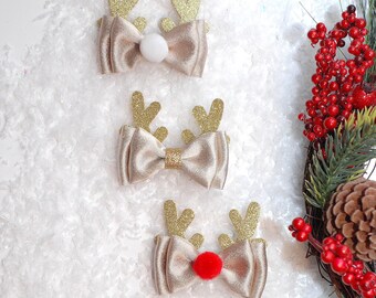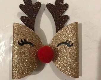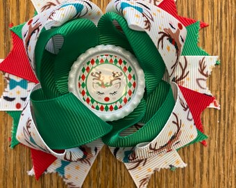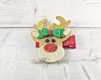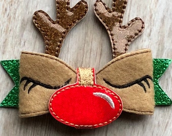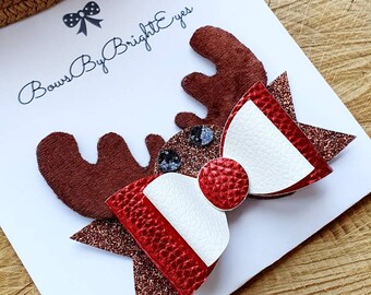Rudolph the Red Nose Reindeer Hair Clip....Ribbon Sculpture,Hairclip,Hair Accessory, Hair Bow