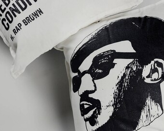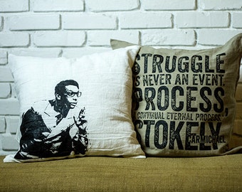 Stokely Carmichael Pillow, WHITE, GRAY, & BEIGE , 20 x 20, double-sided