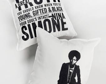 Nina Simone Pillow, White, Red, Gray, & Beige 100% cotton, 20 x 20, double-sided