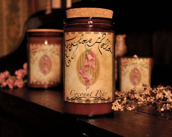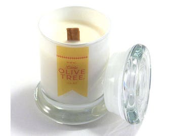 - Materials: soy, wax, cotton wick, glass jar, recycled paper cap