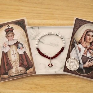 Our high-quality laminated prayer cards are made to last with rounded corners and no sharp points. They feature a beautiful color picture on one side and a prayer on the reverse. The generous 3.5 x 5.5 size is perfect for a prayer book or missal. These beautiful little devotional items are great reminders to pray to our special intercessors. Collect your favorite saints or tuck one into any special occasion card as a gift.