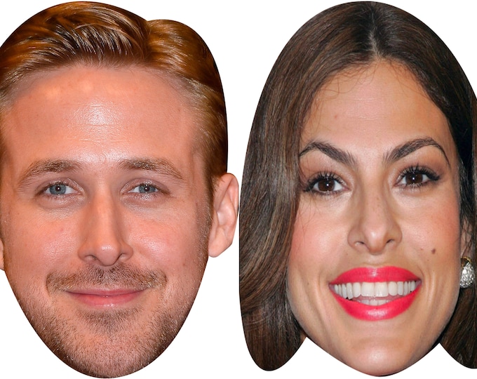 Ryan Gosling y Eva Mendes Pareja de celebridades Disfraces Paquete de mascarillas faciales Máscara de despedida de soltero Corte personalizado DIY o palos o elásticos listos para usar