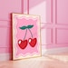 Coquette Pink Bows Heart Cherry Print Digital Trendy Wall Art Retro Aesthetic Cherries Dorm Room Decor Girly Preppy Printable Red Poster