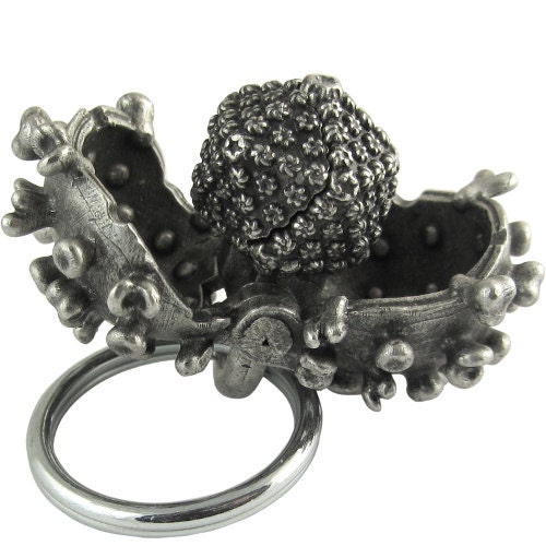 This clever and intricate keychain depicts a virus of a group know as the Herpesviridae. Every detail, right down to the capsid and envelope proteins has been rendered with great attention to accuracy! The lipid envelope opens up to reveal the iconic, icosahedral viral capsid, which in turn opens up to reveal the viral DNA. Even the unique types of capsomeres (capsid protein subunits) have been depicted.