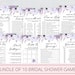 Hand Painted Purple Bridal Shower Games and Signs Bundle Editable Template, Lilac Wedding Shower Printable Bachelorette Party Games Set 019l