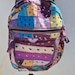 This cute patchwork drawstring backpack is made with pretty printed premium cotton fabrics. It has 21 different squares so the front and back are not the same. It is the perfect go-around town bag. It is not too big yet not too small. It is lightweight and can easily be packed in a suitcase when traveling. The bag is fully lined with an inside pocket, using the same fabric that is used for the drawstring sleeve. The straps are a cotton twisted cord. The bag measures approximately 16 inches tall and 12½ inches wide.
