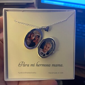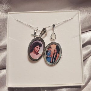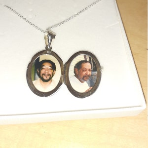 1. a high quality solid sterling silver locket (measures 26 mm x 19 mm, weighs 4.6 grams). It could hold 2 photos inside. It can be engraved on both sides with your custom texts. Please contact me for a special listing if you are interested in engraving ($12 per side)