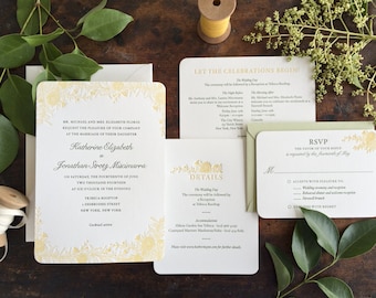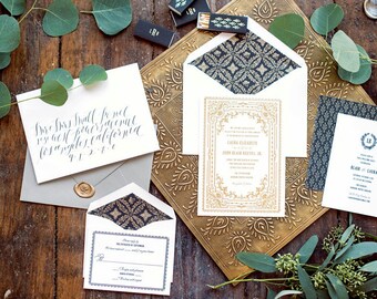 Gold Foil Wedding Invitation, Letterpress Wedding Invite, Formal Wedding Invitation, Wedding Invitation Suite, INVITATION SAMPLE PACK