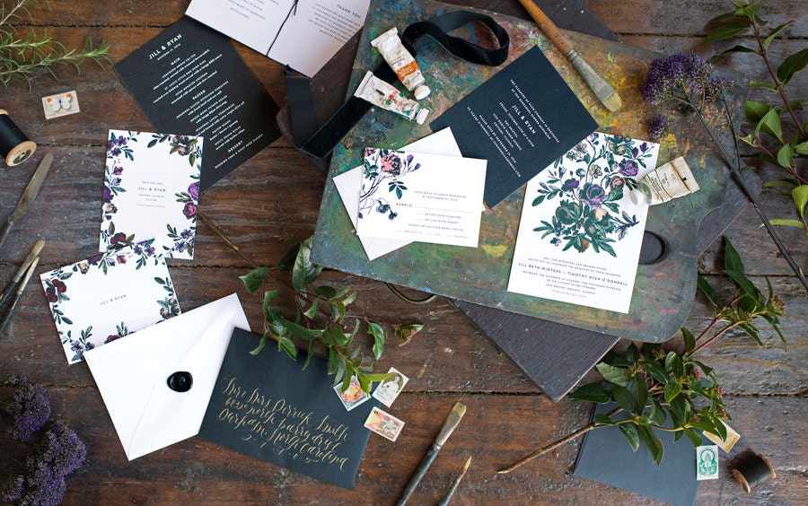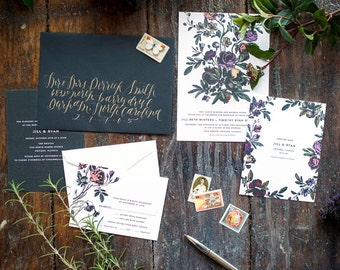 Botanical Wedding Invitation, Vintage Flower Invite, Floral Illustration Invitation, Vintage, Marsala, Jewel Tones INVITATION SAMPLE PACK