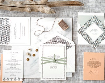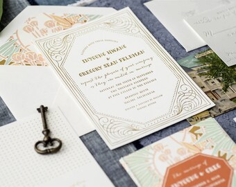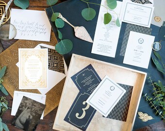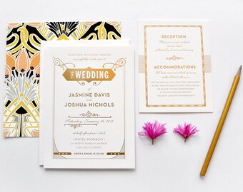 Gatsby Wedding Invitation, Letterpress Invite, Art Deco Wedding Invitation, Art Nouveau Invitation, Gold Wedding INVITATION SAMPLE PACK