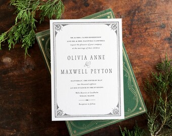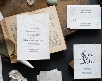 Floral Wedding Invitation, Flower Invite, Vintage Botanical Wedding Invitation, Letterpress Wedding, Victorian Flower INVITATION SAMPLE PACK