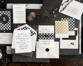 Gold Foil Wedding Invitation, Letterpress Wedding Invite, Formal Wedding, Wedding Invitation Suite, Black and Gold INVITATION SAMPLE PACK