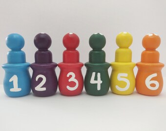 Children's set of six plush felt toy cupcakes for early learning and pretend play. Perfect for color matching too!