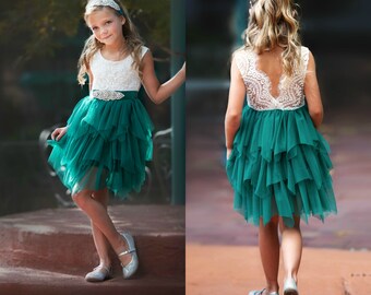 Emerald Flower Girl Dress, Green Christmas dress, Flower girl dresses, lace flower girl dress, tulle flower girl dress,rustic flower girl