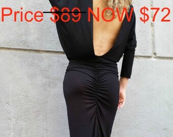 Black Maxi Dress / Loose Open Back Dress / Long Sleeve Extravagant Dress / EXPRESS SHIPPING