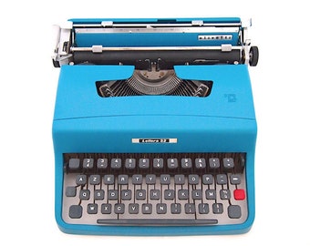 CHRISTMAS SALE!* Olivetti lettera 32 typewriter, 1964, Olivetti typewriter, blue, working typewriter, portable typewriter, azerty.
