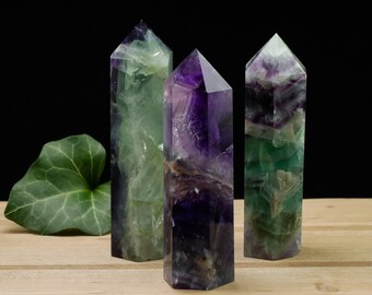 Rainbow FLUORITE Crystal Point - 4.5 inch XXL - Fluorite Point, Blue Fluorite, Green Fluorite, Purple Fluorite, Fluorite Crystal Wand E1215