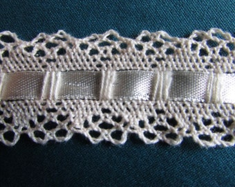 BTY ECRU Cotton Lace with Satin Ribbon One and One Quarter inches wide 015