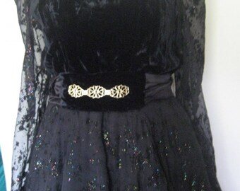 Velvet and Black Lace evening dress