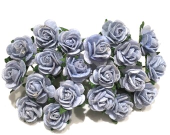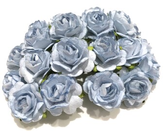 Dusky Blue Open Mulberry Paper Roses Or026