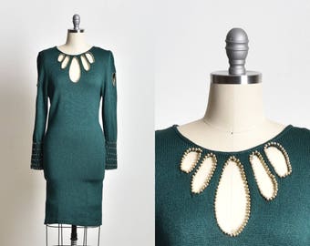 Evening dress, Open back dress, Dark green dress, Green dress, knitted dress, beaded dress, vintage dress xmas dress xmas gift, gift for her