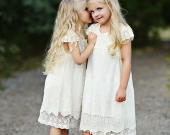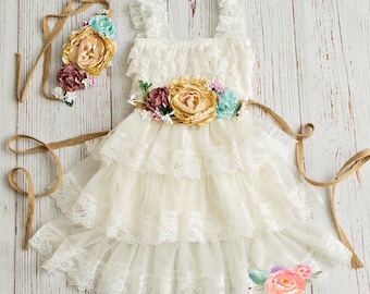 Lace flower girl dress, Flower girl dresses, Country rustic lace flower girl dress, Ivory Lace dress, Toddler baby lace dress, girls dresses