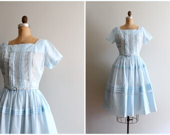 vintage 50s pastel day dress - 1950s dress / '50s pastel blue dress - vintage bridesmaid dress / vintage 50s day dress - pale blue dress
