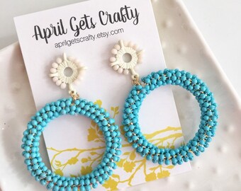 Blue Open Hoop SeadBead Earrings
