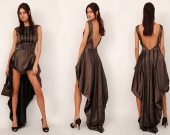 Open Back Dress, , Maxi Grey Dress, Gothic Dress, Asymetric Dress