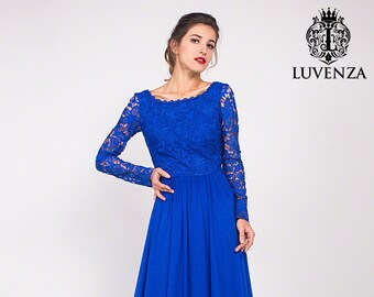 Blue Lace Tulle Dress - Lace Evening Dress - White Maxi Dress - Lace Prom Dress - Black Lace Dress - Formal Dress Wedding Gown C03