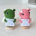 Perfect for a catch-all for your car! Store change, sanitizer, lotion, etc. in this little guy! The loop is perfect to be able to hang on steering wheel lever or shifter. Primary color is the body of the YipYip and the secondary color is the eyes. This is made of a soft chenille yarn. Pattern by Carissa Browning.