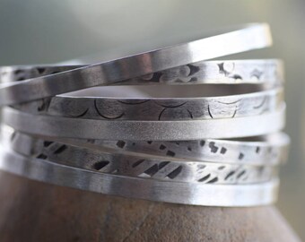 Sterling Silver bangles/ Set of 5 Stacking bangles/ Textured silver bangles/ Hammered silver bangles/ Stacking bracelets/ Oxidized bangles/