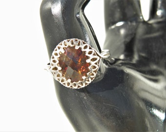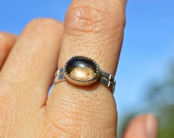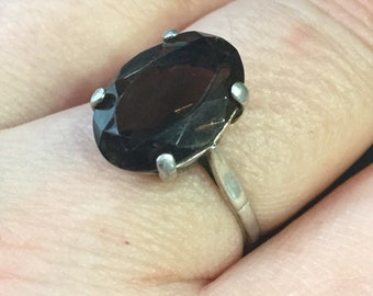 Handmade sterling silver smoky quartz ring//size 7.5
