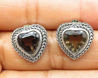 Womens Vintage Estate Sterling Silver Smoky Quartz Earrings 2.8g E2395