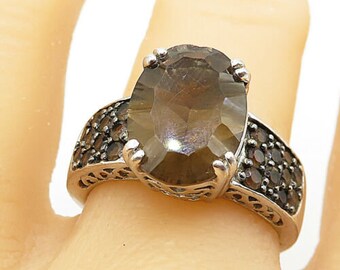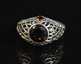 925 sterling silver - smoky quartz filigree detail cocktail ring sz 9 - r10888