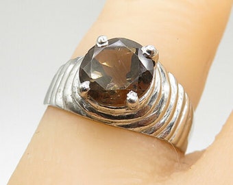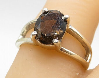 925 sterling silver - smoky quartz split band smooth solitaire ring sz 7 - r7774