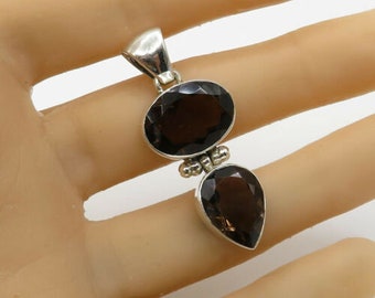 925 sterling silver - smoky quartz geometric drop pendant 8.4g - p2042