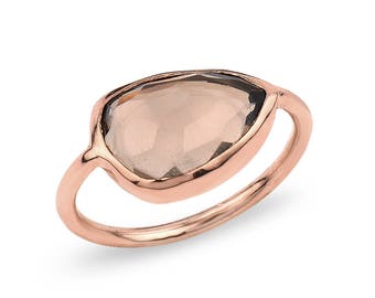 Silver Smoky Quartz Rose Gold Ring Gift For Her