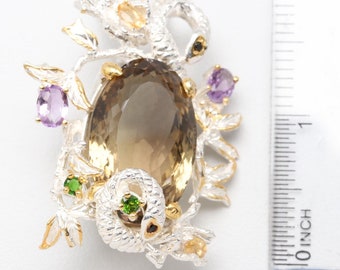 Sterling Silver Smoky Quartz, Amethyst and Citrine Converter Pendant Necklace
