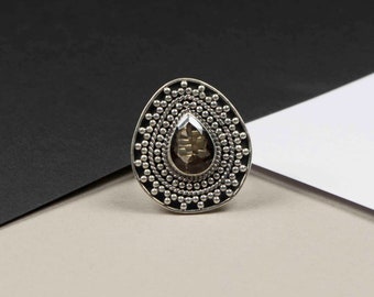 Handmade 925 Sterling silver Smoky quartz shield boho ring US size 9.5