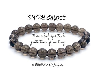 6mm or 8mm Smoky Quartz Bracelet, Healing Crystal Bracelet, Healing Crystals and Stones, Bracelets for Women, Valentines Day, Gift for Her