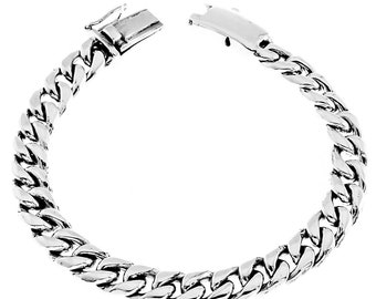 8mm Wide Curb Chain Bali Handmade 925 Sterling Silver Bracelet, 7-9"
